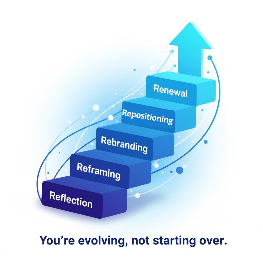 We help clients reframe their experience so it reads as evolution—not reinvention.