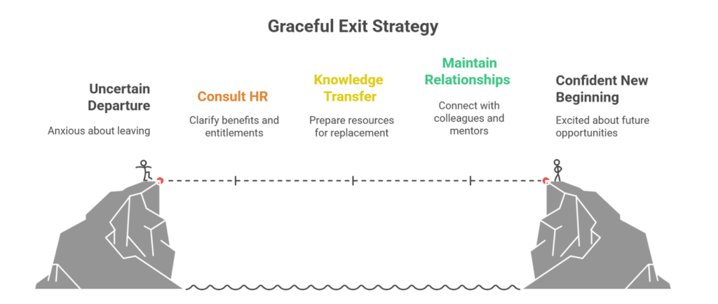 Provide adequate notice, document handovers, and leave on good terms. A positive exit sets you up for future success.